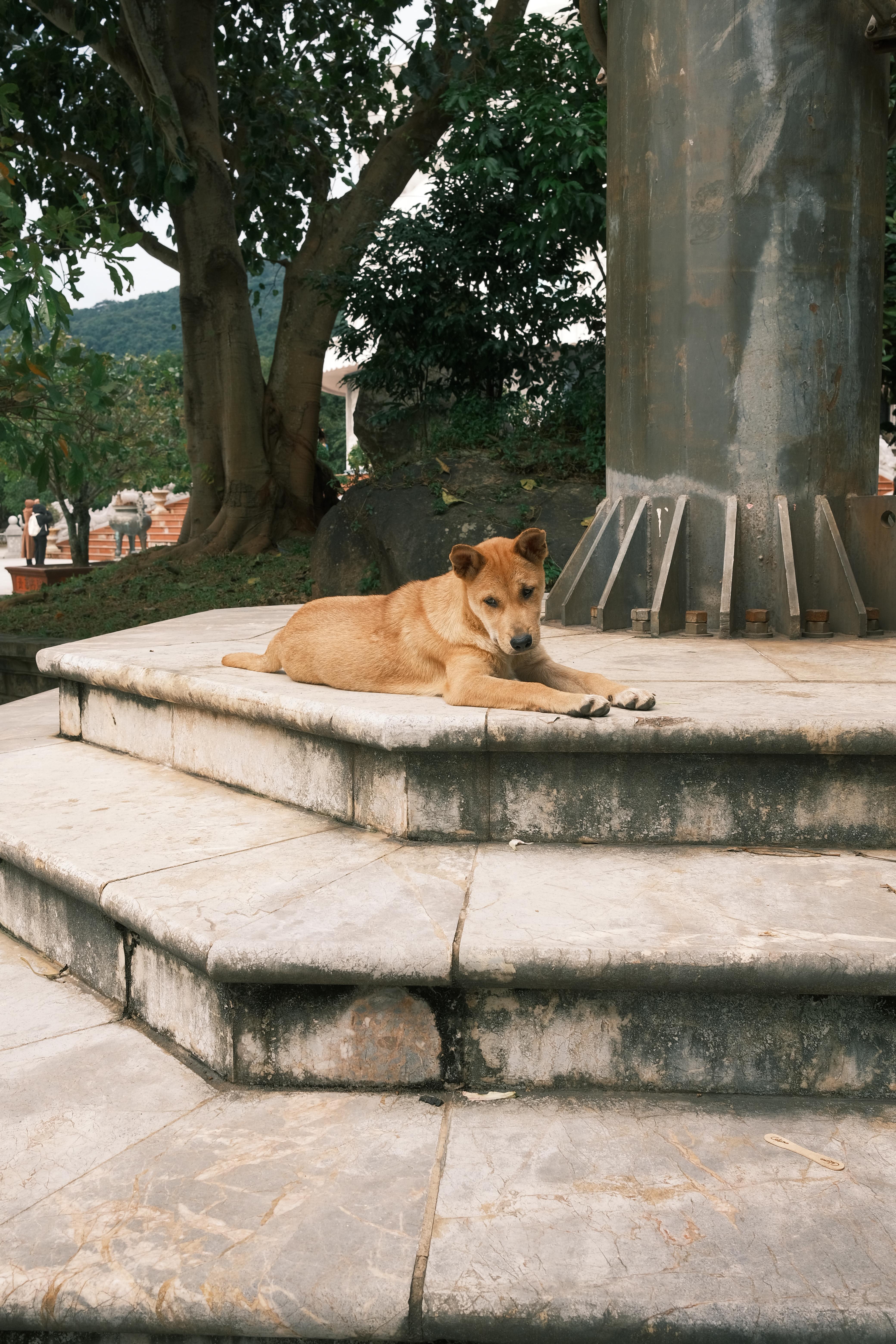 린응사 안에서는 자유롭게 돌아다니거나 바닥에 누워 낮잠을 자는 강아지들을 자주 마주치게 돼요.